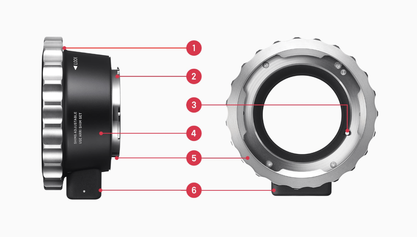 MC-31 có các điểm điều chỉnh miếng đệm ở hai điểm của ngàm. Có thể thực hiện điều chỉnh bằng bộ miếng đệm (Được cung cấp) ở phía ngàm máy ảnh 2 , hoặc miếng đệm cho máy ảnh kỹ thuật số ARRI ở phía ống kính 1 .