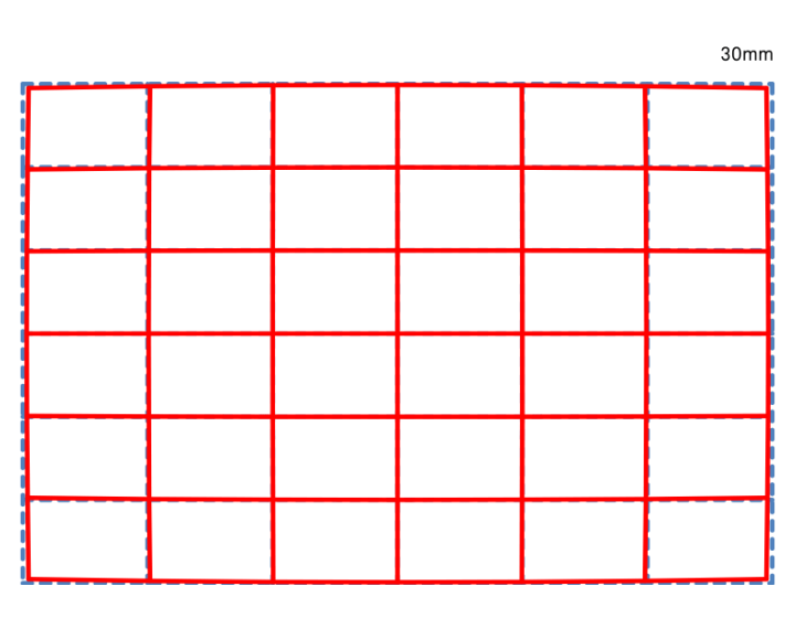 Khi bạn chụp ảnh một mẫu lưới, nó sẽ xuất hiện như đường chấm màu xanh lam hiển thị. Đường màu đỏ minh họa cách mẫu lưới sẽ xuất hiện trong bức ảnh thực tế khi tính đến bất kỳ biến dạng ống kính nào.