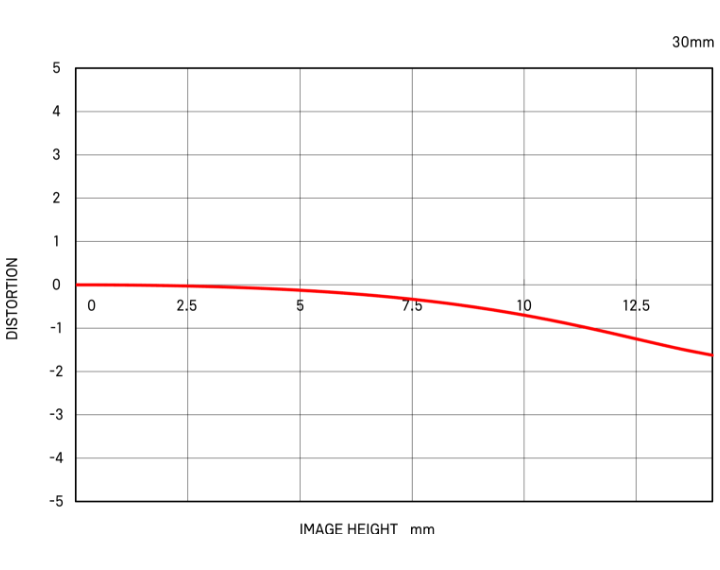 Trong biểu đồ này, trục ngang thể hiện chiều cao ảnh lý tưởng (khoảng cách từ tâm đến cạnh ảnh [mm]). Trục dọc thể hiện mức độ biến dạng. Mức độ biến dạng được biểu thị bằng mức độ Y, là chiều cao ảnh thực tế, tăng (hoặc giảm) so với Y0 là chiều cao ảnh lý tưởng.