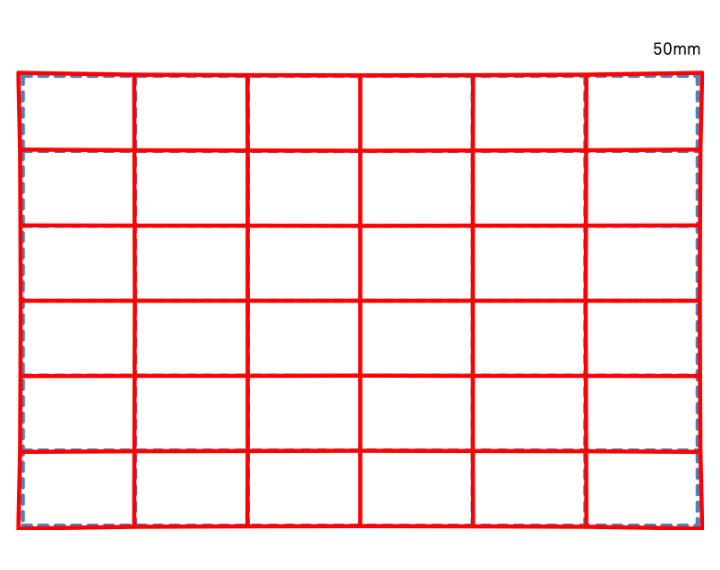 Khi bạn chụp ảnh một mẫu hình lưới, nó sẽ xuất hiện như đường chấm xanh lam hiển thị. Đường màu đỏ minh họa cách mẫu hình lưới sẽ xuất hiện trong ảnh thực tế khi tính đến độ méo của ống kính.