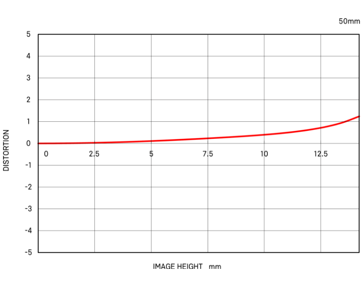 Trong biểu đồ này, trục ngang hiển thị chiều cao ảnh lý tưởng (khoảng cách từ tâm đến cạnh của hình ảnh [mm]). Trục dọc hiển thị mức độ méo. Mức độ méo được biểu thị bằng mức độ Y (chiều cao ảnh thực tế) tăng (hoặc giảm) so với Y0 (chiều cao ảnh lý tưởng).