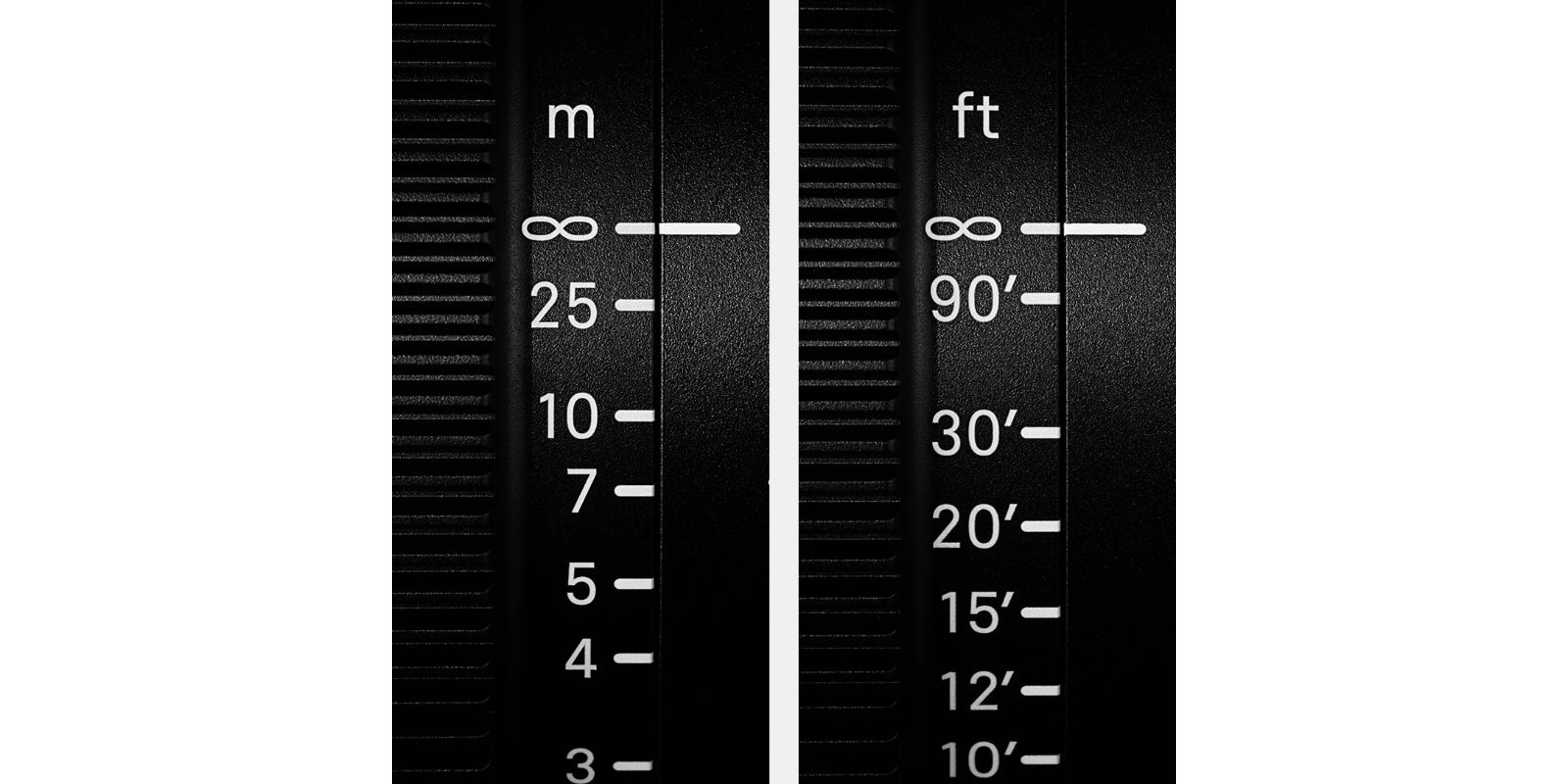 Vòng lấy nét tùy chọn với vạch chia theo feet hoặc mét
