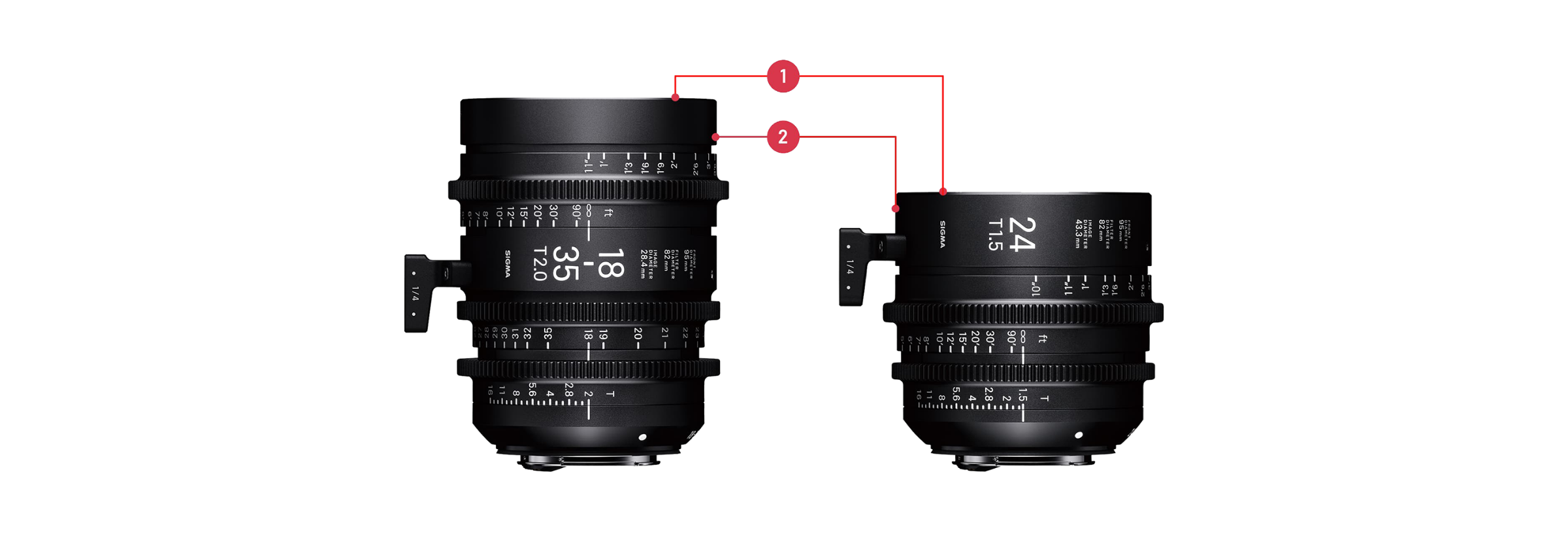 Đối với các ống kính 20mm~85mm T2 FF, 135mm T1.8 FF, đường kính phía trước là 95mm, tương tự như các ống kính cine khác và tương thích với các hộp chống sáng (matte box). So với các ống kính cùng loại, ống kính cine của Sigma nhẹ và gọn hơn.