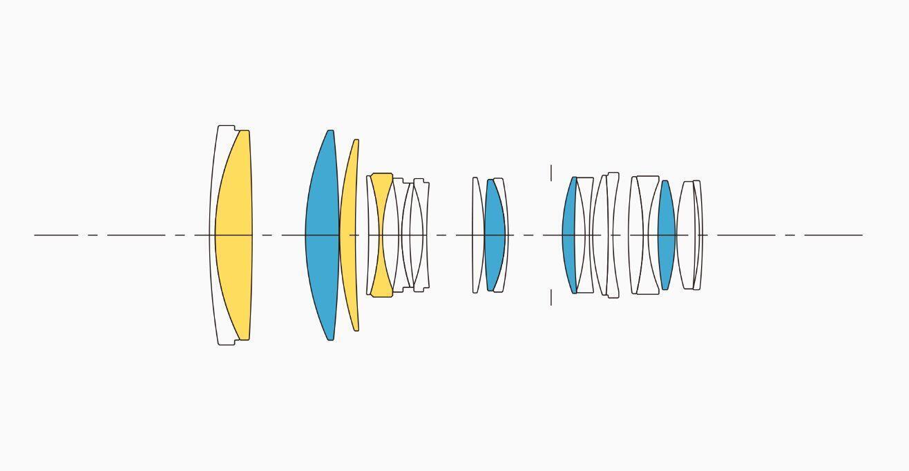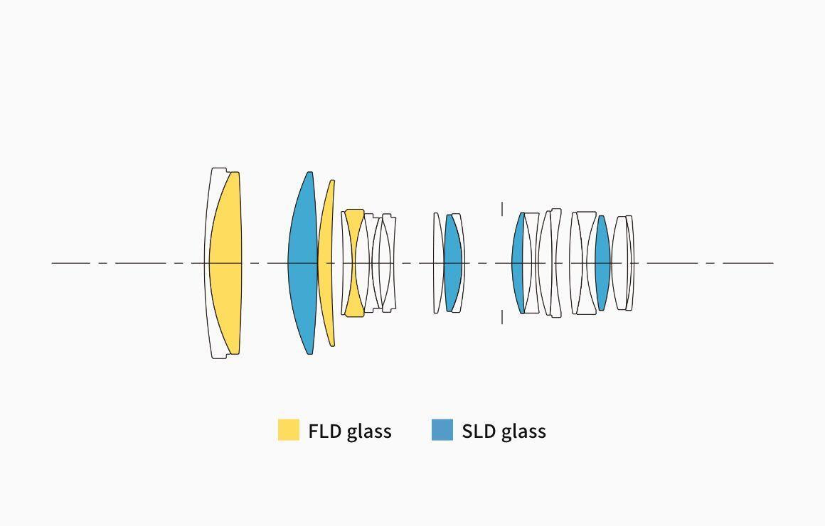 , một thấu kính SLD (Special Low Dispersion – Tán Sắc Thấp Đặc Biệt), ba thấu kính SLD chiết suất cao, và một thấu kính chiết suất cao, tán sắc cao. Bằng cách đưa một hoặc nhiều thành phần tán sắc thấp vào mỗi nhóm thấu kính, ống kính này đảm bảo chất lượng hình ảnh vượt trội trong toàn bộ phạm vi zoom và tiêu cự.