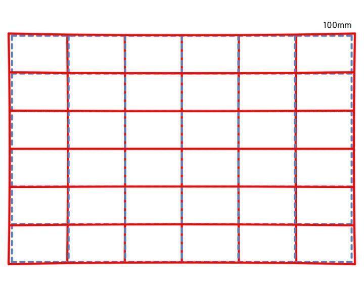 Khi bạn chụp ảnh một mẫu lưới, nó sẽ xuất hiện như đường chấm xanh lam. Đường màu đỏ minh họa cách mẫu lưới sẽ xuất hiện trong bức ảnh thực tế khi tính đến bất kỳ độ méo ống kính nào.