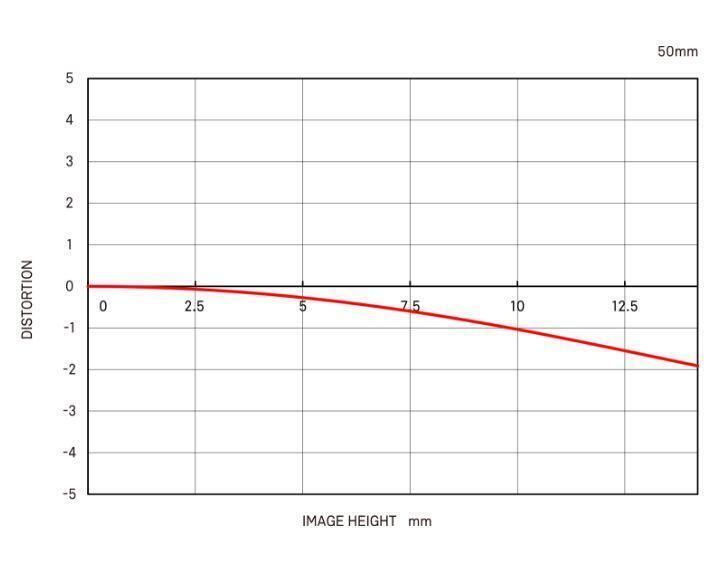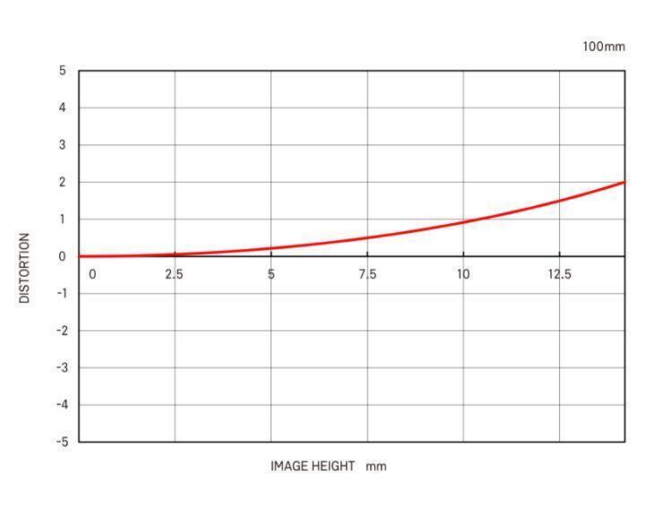 Trong biểu đồ này, trục ngang thể hiện chiều cao hình ảnh lý tưởng (khoảng cách từ tâm đến mép hình ảnh [mm]). Trục dọc thể hiện mức độ méo hình. Mức độ méo hình được biểu thị bằng mức độ Y, là chiều cao hình ảnh thực tế, tăng (hoặc giảm) so với Y0 là chiều cao hình ảnh lý tưởng.