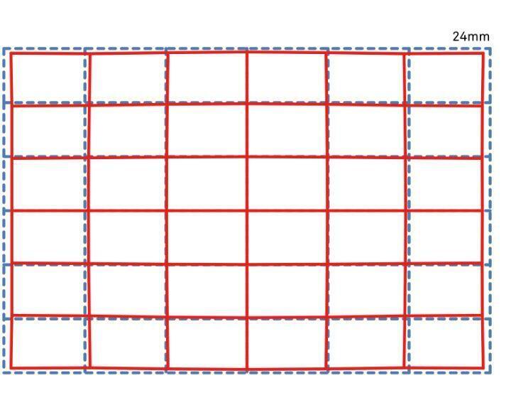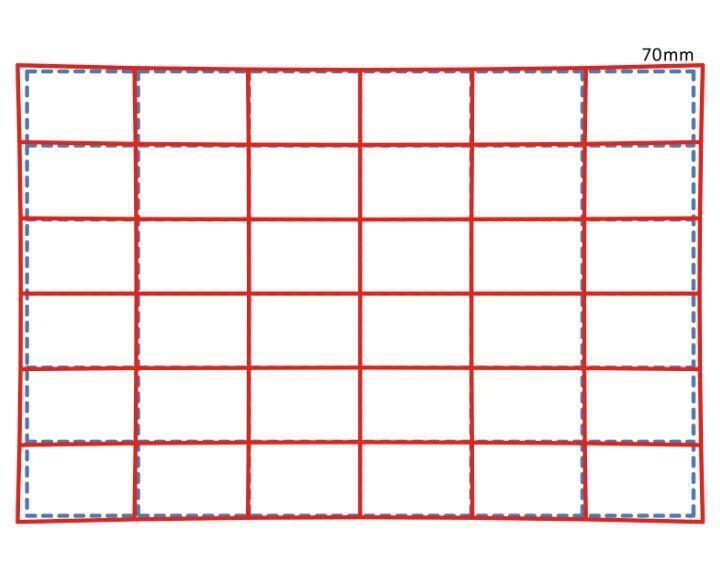 Khi bạn chụp ảnh một mẫu lưới, nó sẽ xuất hiện như đường chấm xanh lam. Đường màu đỏ minh họa cách mẫu lưới sẽ xuất hiện trong bức ảnh thực tế khi tính đến bất kỳ độ méo ống kính nào.