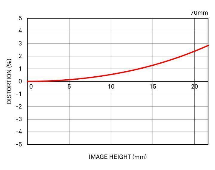 Trong biểu đồ này, trục ngang thể hiện chiều cao hình ảnh lý tưởng (khoảng cách từ tâm đến mép hình ảnh [mm]). Trục dọc thể hiện mức độ méo hình. Mức độ méo hình được biểu thị bằng mức độ Y, là chiều cao hình ảnh thực tế, tăng (hoặc giảm) so với Y0 là chiều cao hình ảnh lý tưởng.