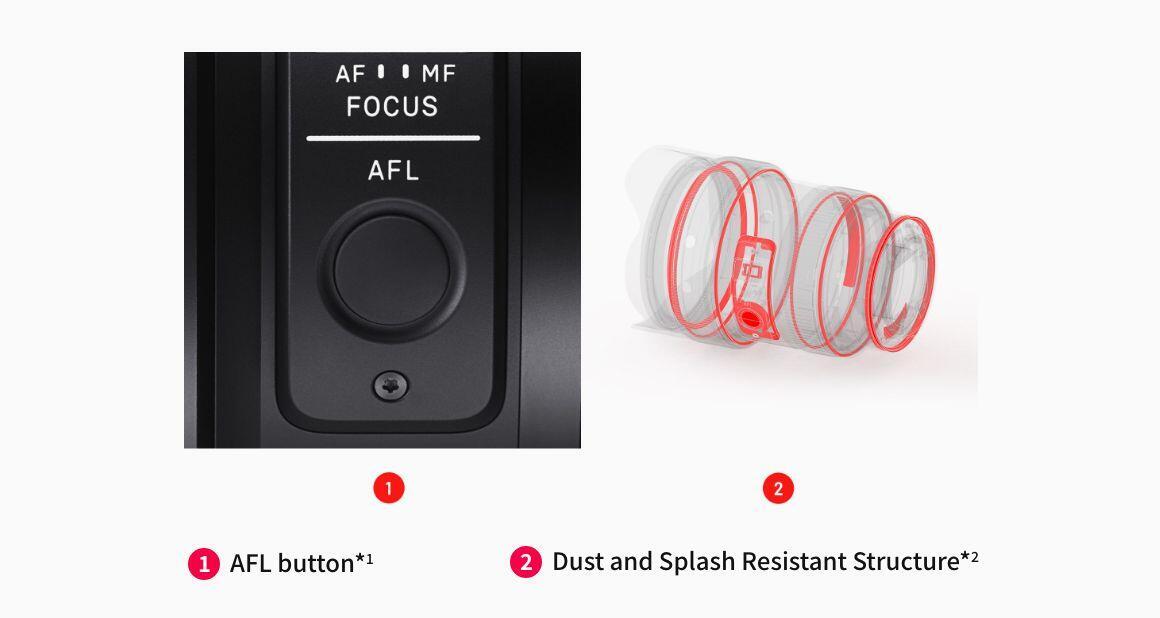 * Although dust and splash resistant structure allows the lens to be used in light rain, it is not the same as being waterproof.
