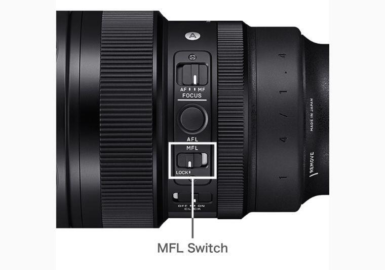Công tắc MFL (Manual Focus Lock – Khóa Lấy Nét Thủ Công) vô hiệu hóa vòng lấy nét trên ống kính. Sau khi lấy nét thủ công ống kính đến vị trí mong muốn, hãy đặt công tắc MFL thành ‘LOCK’ (KHÓA) để ngắt kết nối vòng lấy nét.
