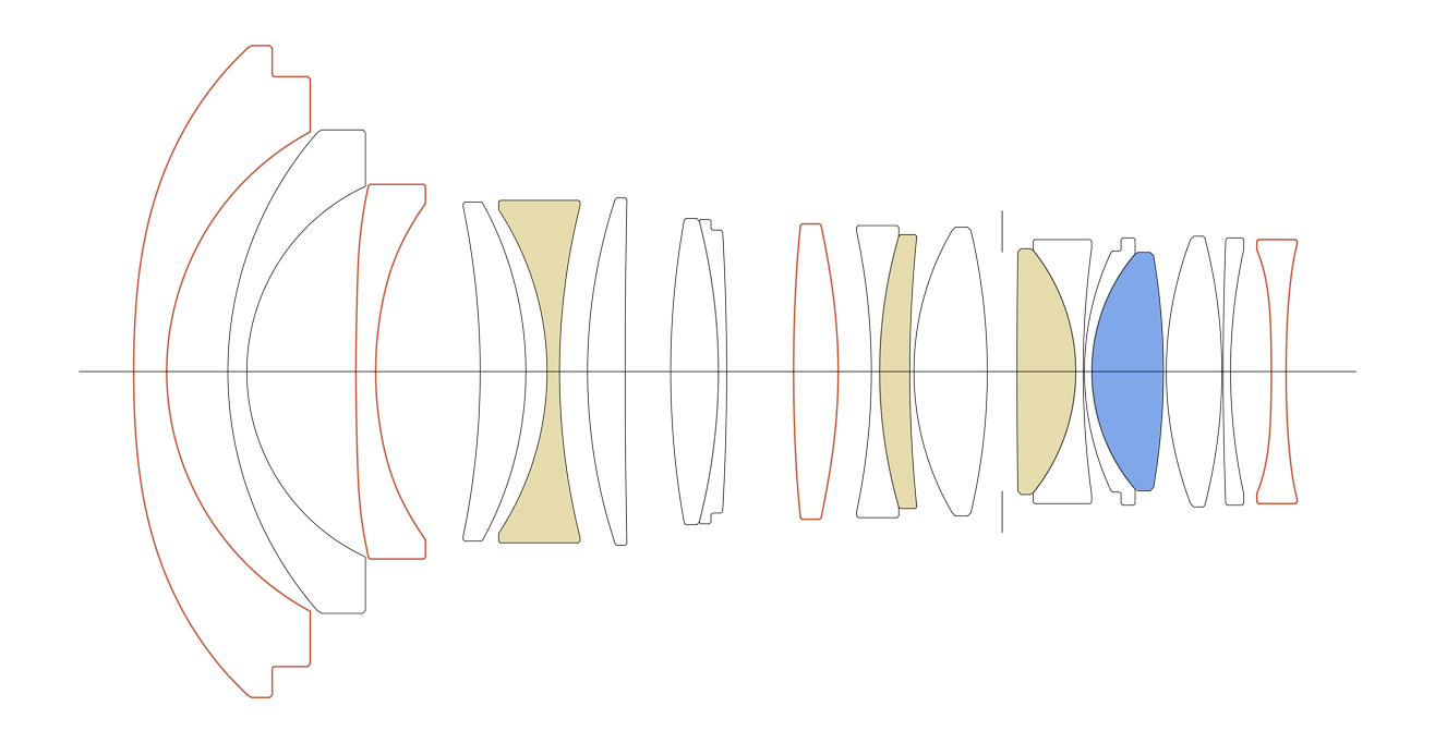 • Cấu tạo ống kính: 19 thấu kính trong 15 nhóm (3 FLD, 1 SLD, và 4 thấu kính phi cầu)