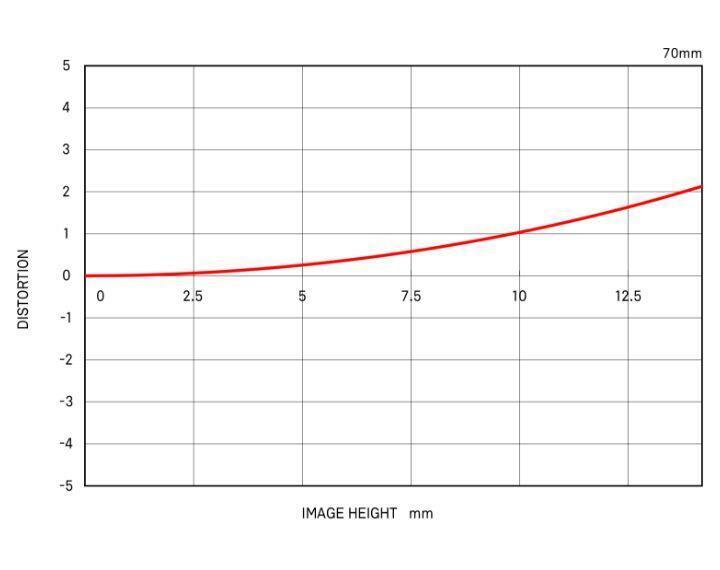 Trong biểu đồ này, trục hoành biểu thị chiều cao hình ảnh lý tưởng (khoảng cách từ tâm đến cạnh hình ảnh [mm]). Trục tung biểu thị mức độ méo hình. Mức độ méo hình được biểu thị bằng mức độ Y, là chiều cao hình ảnh thực tế, lớn hơn (hoặc nhỏ hơn) so với Y0, là chiều cao hình ảnh lý tưởng.