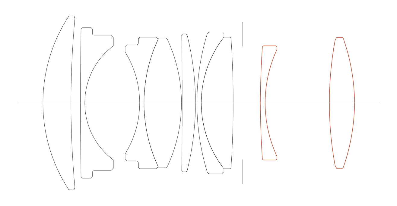 Ngoài việc có bố cục và phân bổ công suất được tối ưu hóa, ống kính này còn tích hợp một thấu kính phi cầu và một thấu kính phi cầu kép, cũng như một thấu kính làm bằng thủy tinh chiết suất cao, tán sắc cao với tán sắc cục bộ dị thường cao. Bằng cách tận dụng hiệu quả các công nghệ này, ống kính mang lại mức ánh sáng vượt trội đến các cạnh của hình ảnh đồng thời giảm thiểu quang sai màu ngang (transverse chromatic aberration). Để hiệu chỉnh méo hình, ống kính tận dụng khả năng hiệu chỉnh hình ảnh* của thân máy ảnh mirrorless, sử dụng sức mạnh hiệu chỉnh của hệ thống quang học để tăng cường độ sắc nét. Kết quả cuối cùng là một ống kính cực kỳ nhỏ gọn mang lại chất lượng hình ảnh sánh ngang với ống kính dòng Art của chúng tôi.