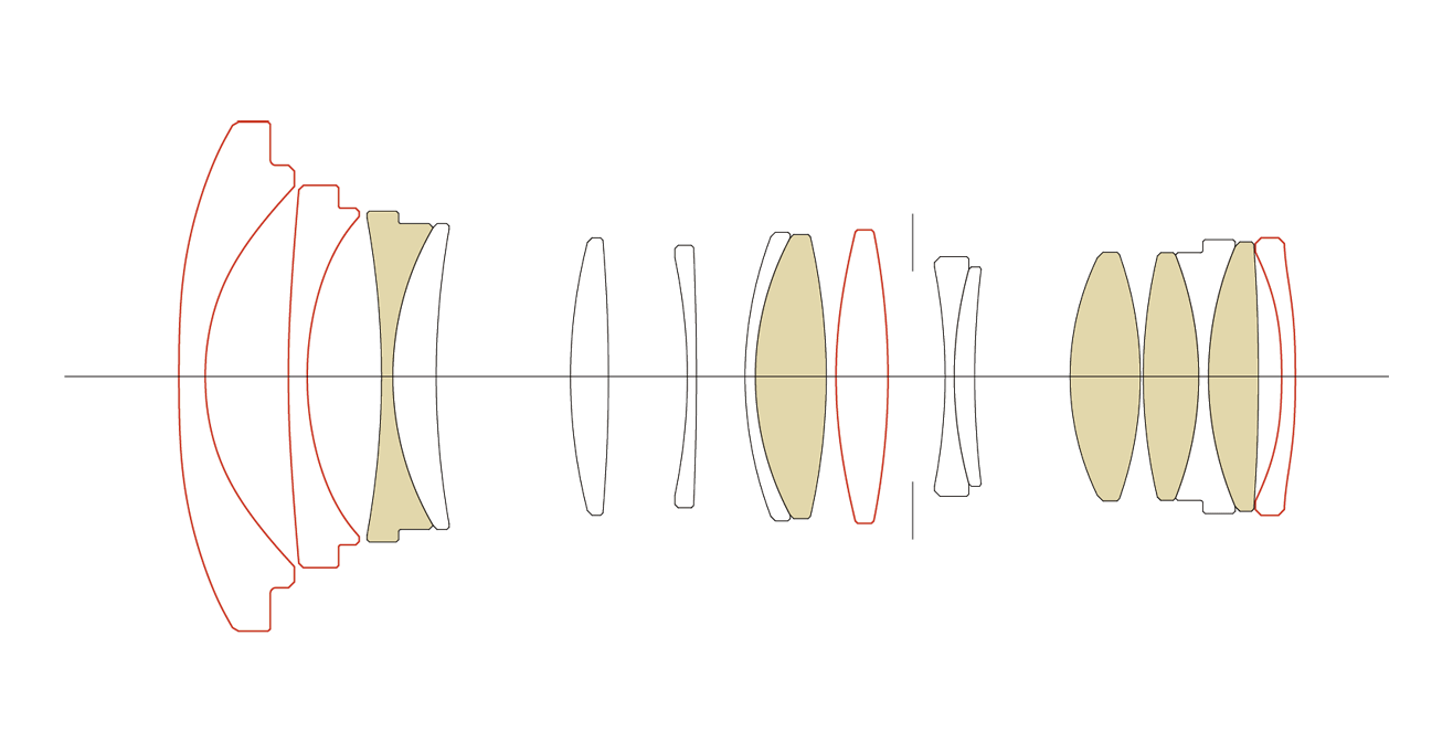16 thấu kính trong 11 nhóm (5 thấu kính FLD và 4 thấu kính phi cầu)