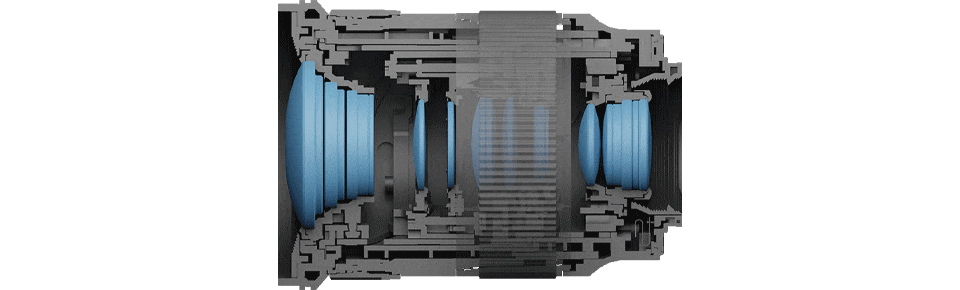 Cơ chế zoom trong (inner zoom mechanism) cho phép ống kính duy trì cùng chiều dài trên toàn bộ phạm vi zoom và hầu như không làm dịch chuyển điểm cân bằng của nó. Sự ổn định này sẽ được đánh giá cao bởi bất kỳ ai muốn sử dụng ống kính với gimbal, hoặc để quay video cầm tay hoặc kiểu vlog. Cơ chế zoom trong cũng góp phần lớn vào kích thước vật lý thuận lợi của ống kính: với chiều dài 100.6mm, đường kính 77.2mm và trọng lượng chỉ 450g*, tính nhỏ gọn của nó sánh ngang với các ống kính zoom góc rộng có khẩu độ tối đa F4 chậm hơn.