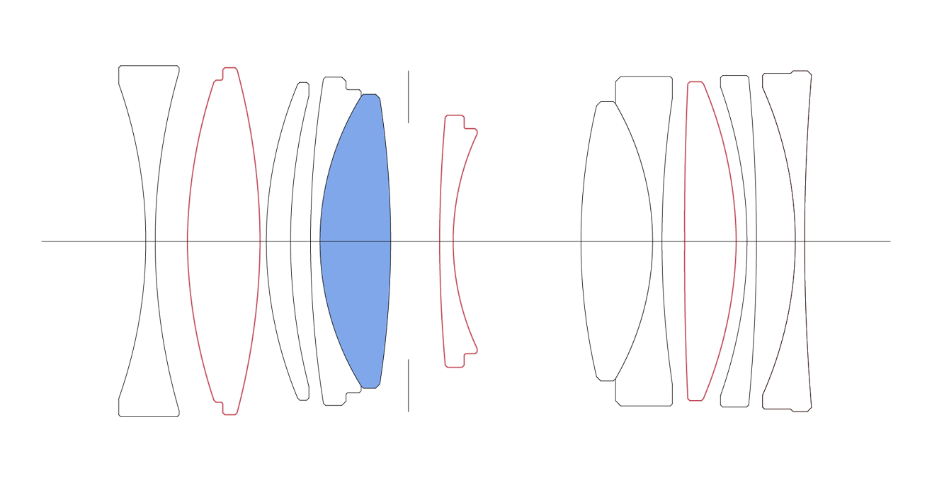 11 thấu kính trong 9 nhóm (gồm 1 SLD và 3 thấu kính phi cầu)