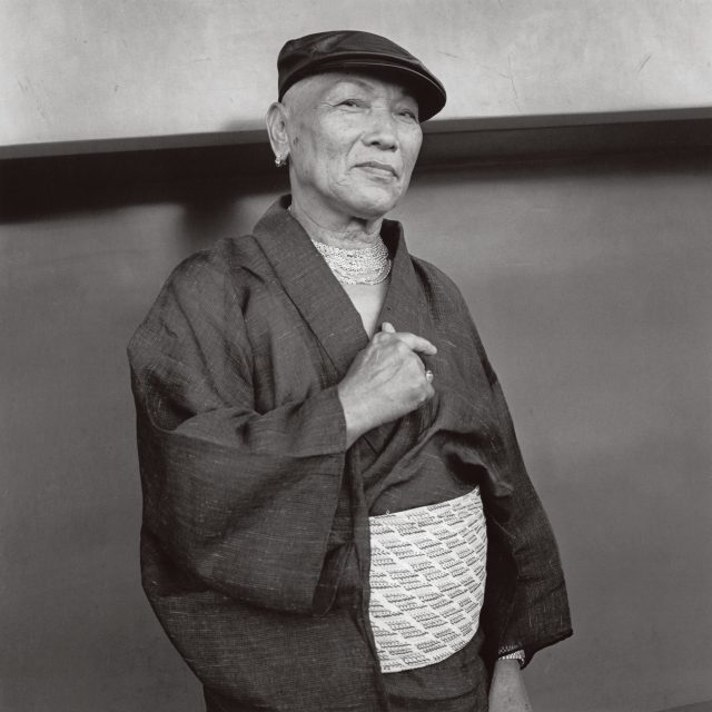 Hãy xem xét kỹ hơn những hình ảnh của ‘Người đàn ông nói với tôi ông là thợ đóng sách’: bức ảnh đầu tiên là một quý ông lớn tuổi đang mỉm cười mặc đồ chạy bộ và quần dài, trong khi vài năm sau ông xuất hiện trong trang phục truyền thống Nhật Bản trước khi chuyển sang vẻ ngoài nữ tính hơn bằng cách đội tóc giả và đeo phụ kiện (1990, 1991, 1992).