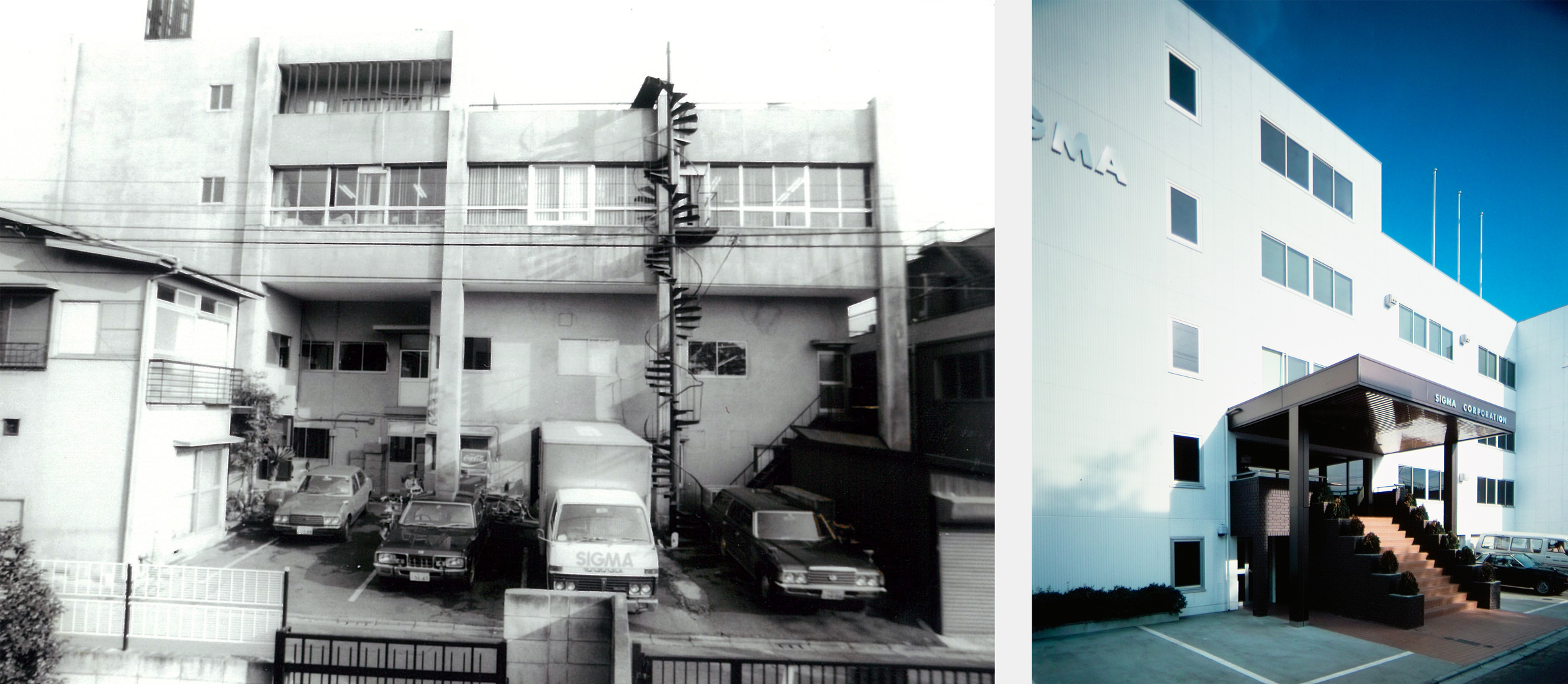 Trụ sở chính đặt tại Komae, Tokyo từ năm 1965 đến 2005. Vào thời điểm di dời (trái) và sau khi cải tạo (phải).
