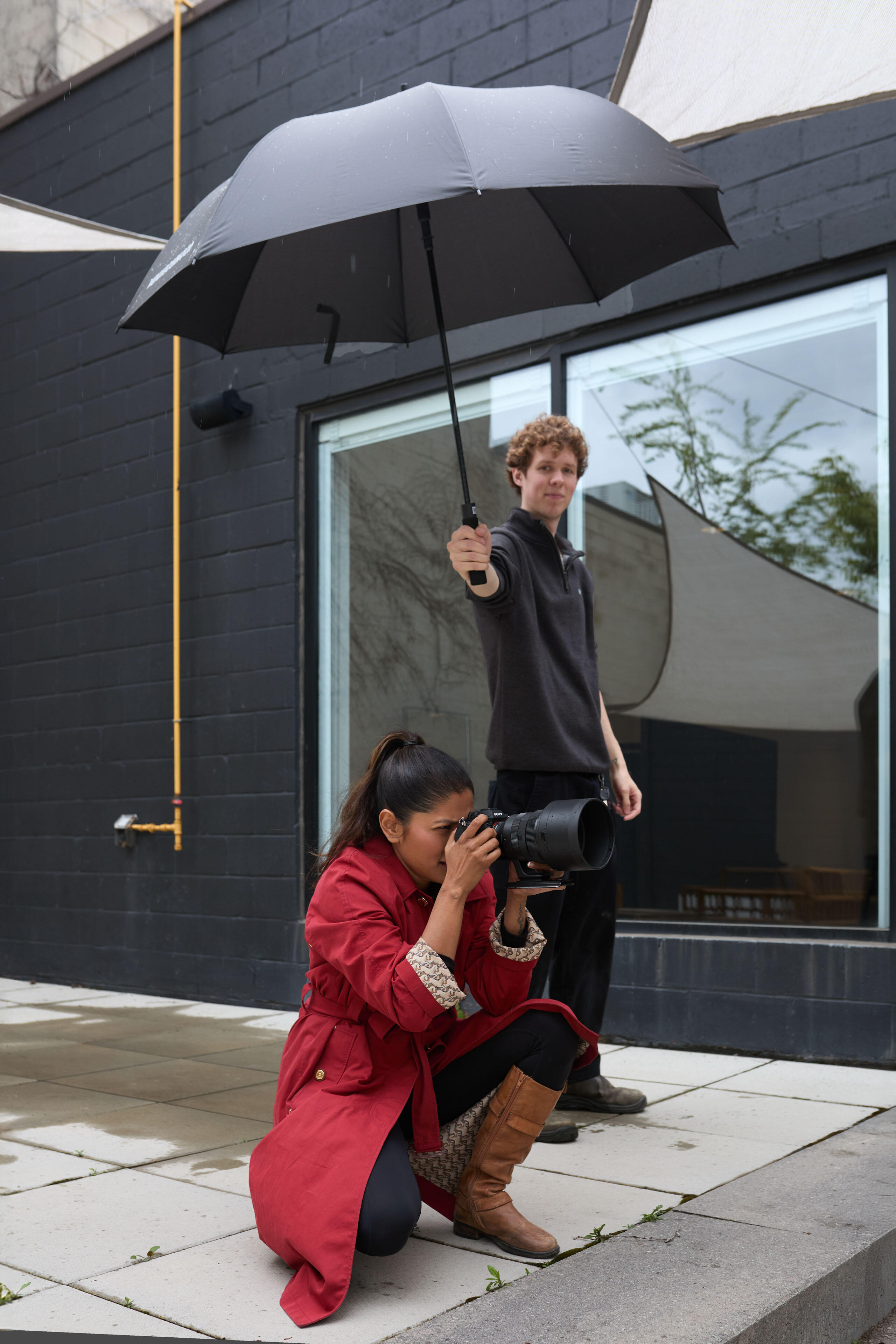 Ngày chụp dự báo sẽ có mưa giông, nhưng tôi vẫn muốn sử dụng ánh sáng tự nhiên để tôn vinh tình yêu của Lindbergh dành cho nó. Để đảm bảo mưa là một thử thách mà chúng tôi đã sẵn sàng đón nhận, chúng tôi chọn Neighbourhood Studios vì có lối ra sân trong và thiết bị chống mưa.