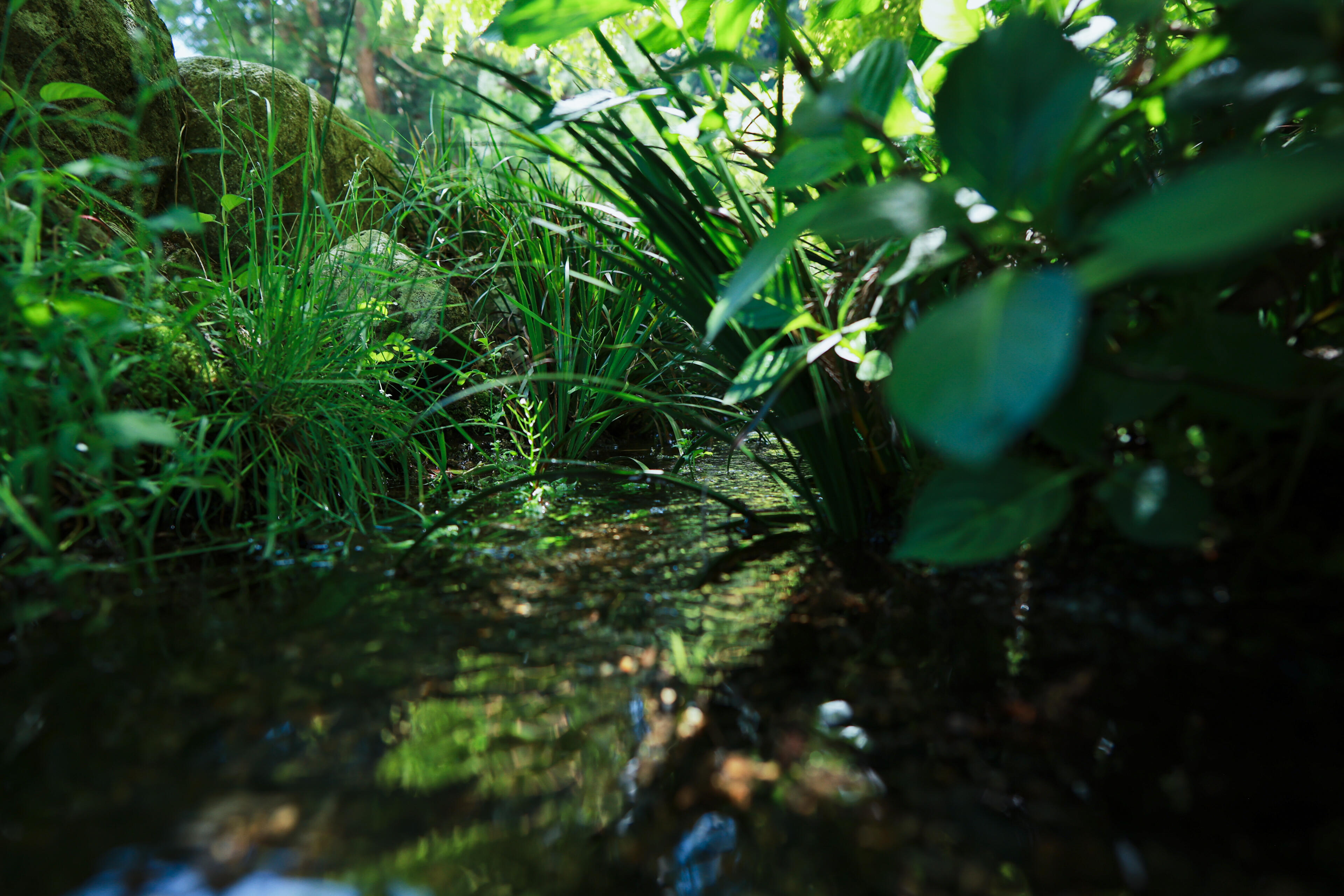 Khi tôi đến gần lưu vực thác nước, lá cây và thảm thực vật xung quanh đung đưa nhẹ nhàng, như thể chào đón tôi. Cảm giác giống như một cảnh trong phim hoạt hình anime, nơi nhân vật chính gặp gỡ các linh hồn của khu rừng ở một vùng đất lạ. Tôi không sợ hãi cũng chẳng bất an. Có lẽ trí tưởng tượng của tôi đã giúp làm dịu đi khoảnh khắc đó.