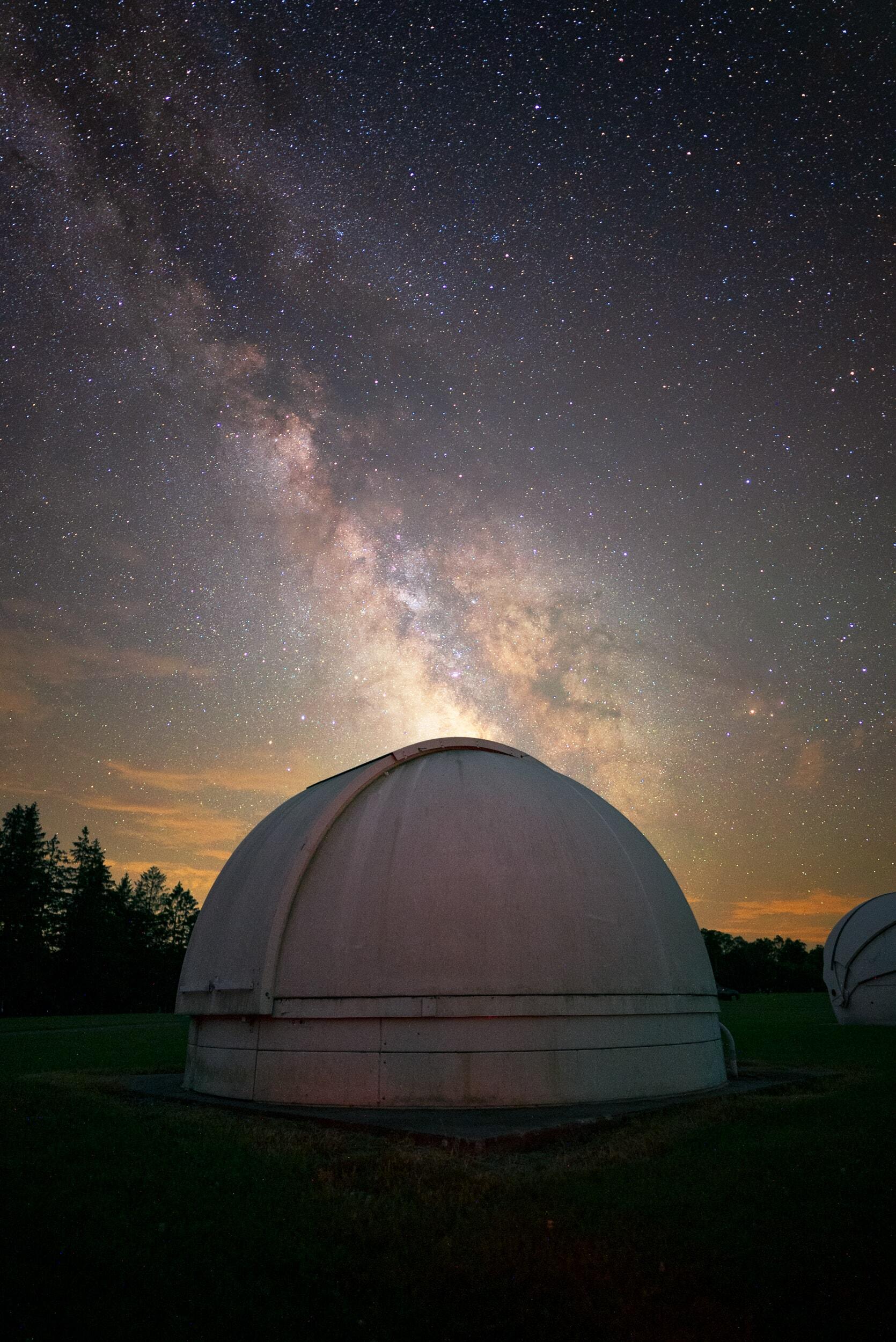 Di chuyển về phía nam từ Ithaca, Kona và tôi đã mạo hiểm đến Bờ biển Quốc gia Assateague ở Maryland. Bầu trời ở đây tối hơn một chút và sẽ là nơi tuyệt vời để sử dụng thiết bị bám nhật động (star tracker) của tôi. Bằng cách gắn máy ảnh lên thiết bị theo dõi đã được căn chỉnh cực (polar aligned), ống kính và máy ảnh của tôi sẽ tiếp tục hướng vào cùng một điểm trên bầu trời khi Trái Đất quay. Điều này loại bỏ nhu cầu về thời gian phơi sáng ngắn hơn, nhưng đòi hỏi phải phơi sáng tiền cảnh riêng biệt. Sau khi bức ảnh bầu trời của Dải Ngân Hà được ghi lại, tôi sử dụng điện thoại làm màn hình điều khiển từ xa cho máy ảnh và tìm thấy một vị trí hoàn hảo dọc theo con đường để Kona và tôi ngồi dưới những vì sao. Chúng tôi đã chụp được khoảnh khắc này ngay trước khi một lượng sương mù và mây che khuất các vì sao trong suốt phần còn lại của đêm.