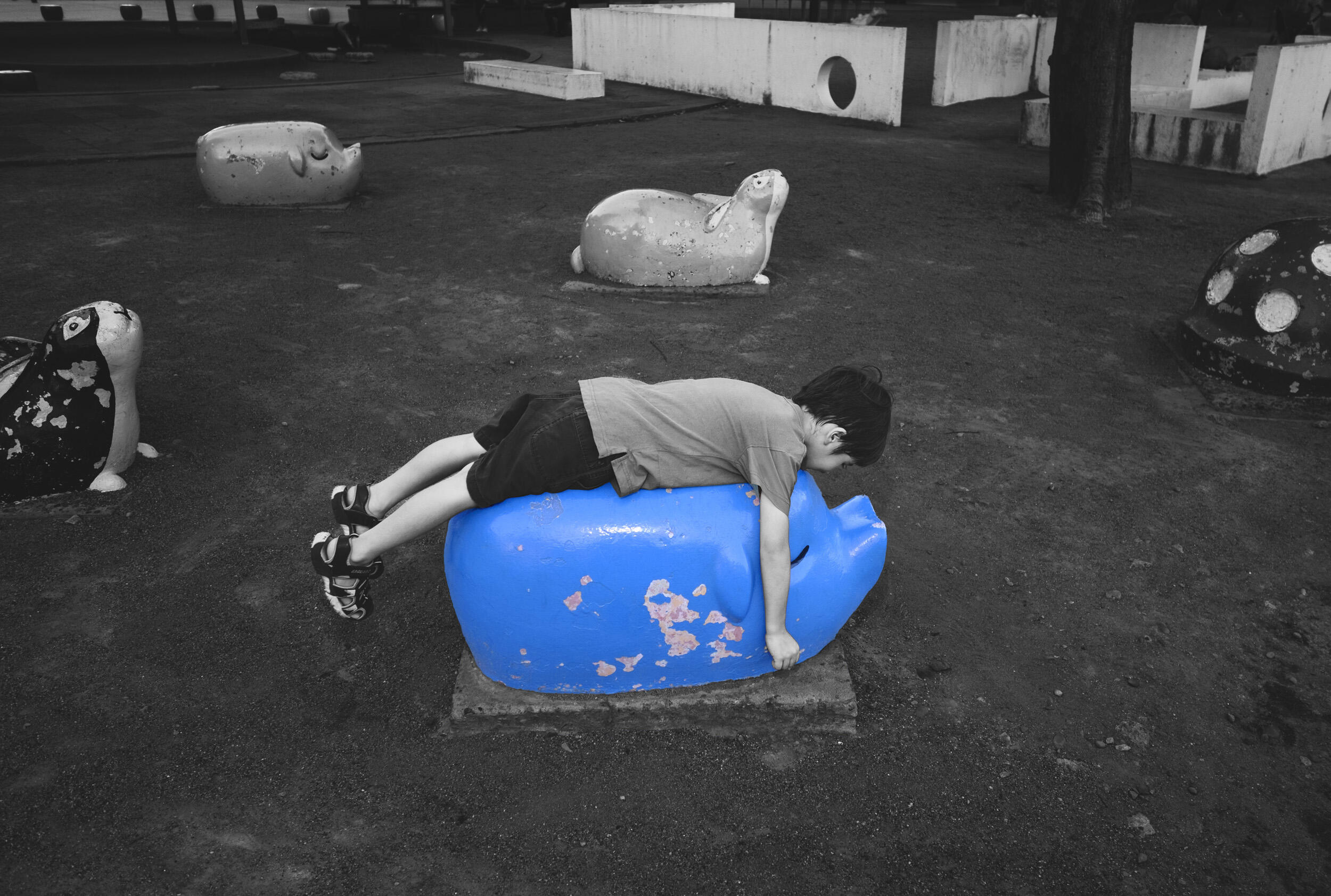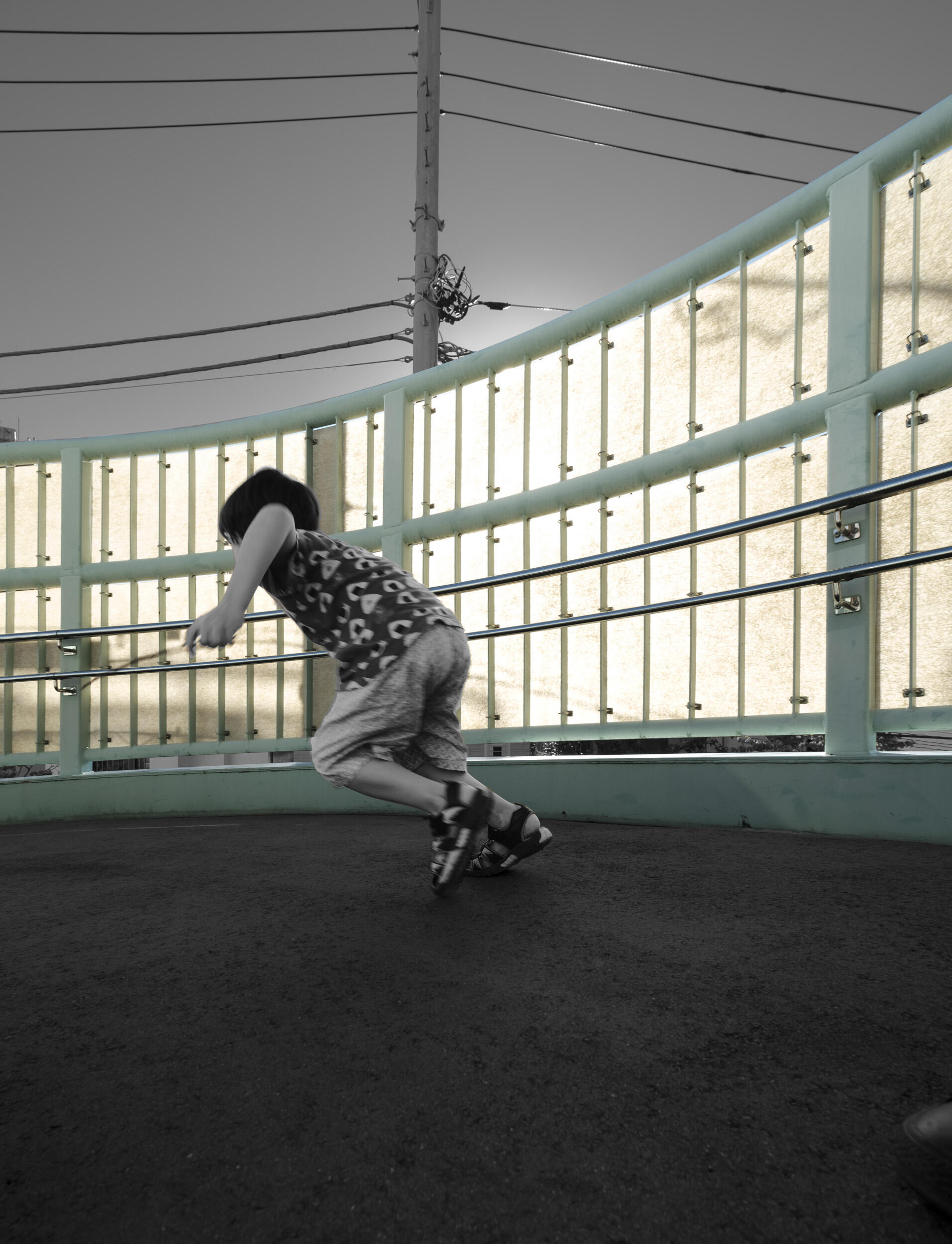 Vì vậy, trong loạt ảnh này, tôi đã vui vẻ tham gia vào một cuộc phiêu lưu quanh nhà, cố gắng bắt kịp nhịp điệu sôi nổi trong các trò chơi của con trai út. Giống như nhiều tác phẩm nhiếp ảnh của tôi trong những năm gần đây, loạt ảnh này dựa trên việc quan sát môi trường xung quanh, những con người và địa điểm truyền cảm hứng cho tôi. Cách xử lý đặc biệt nửa màu, nửa đen trắng mà tôi áp dụng cho những bức ảnh này có liên quan đến công việc vẽ và hội họa của tôi. Tôi đã cố gắng kết hợp khía cạnh đồ họa của đen trắng với những chùm màu sắc tươi sáng. Tiếp theo đó là một chuỗi các trò chơi với hình khối, ánh sáng và màu sắc, đồng hành cùng các trò chơi của con trai tôi. Việc lựa chọn vị trí màu sắc nhằm mục đích nhấn mạnh các yếu tố nhất định của hình ảnh. Ở đây nó chủ yếu liên quan đến cảm giác, sự vui tươi và gợi lại những ký ức tuổi thơ.